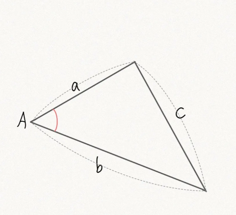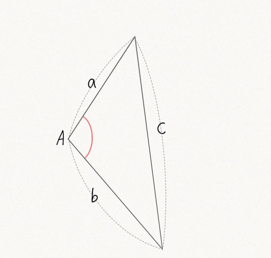 삼각형에서 - 두 변과 끼인 각θ 을 알 때 남은 한 변의 길이를 구하는 식.
